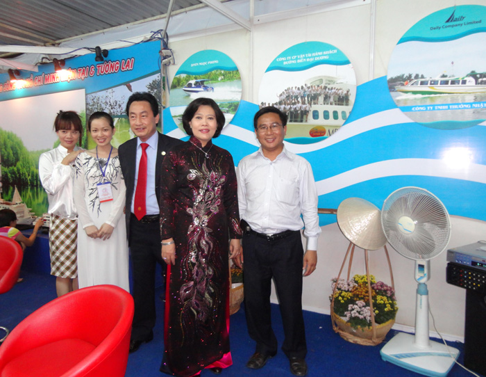 Bà Nguyễn Thị Hồng - Phó chủ tịch UBND TP.HCM, Ông Lã Quốc Khánh - Phó giám đốc Sở Du Lịch và Ông Nguyễn Kim Toản - Giám đốc công ty Thường Nhật (Daily Company) tham quan khu triển lãm Du lịch đường sông TP.Hồ Chí Minh.